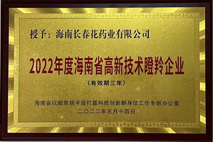 海南長春花藥業有限公司是首批通過“海南省高新技術瞪羚企業”認定的少數企業之一,本次大會作為瞪羚企業代表領取了牌匾。